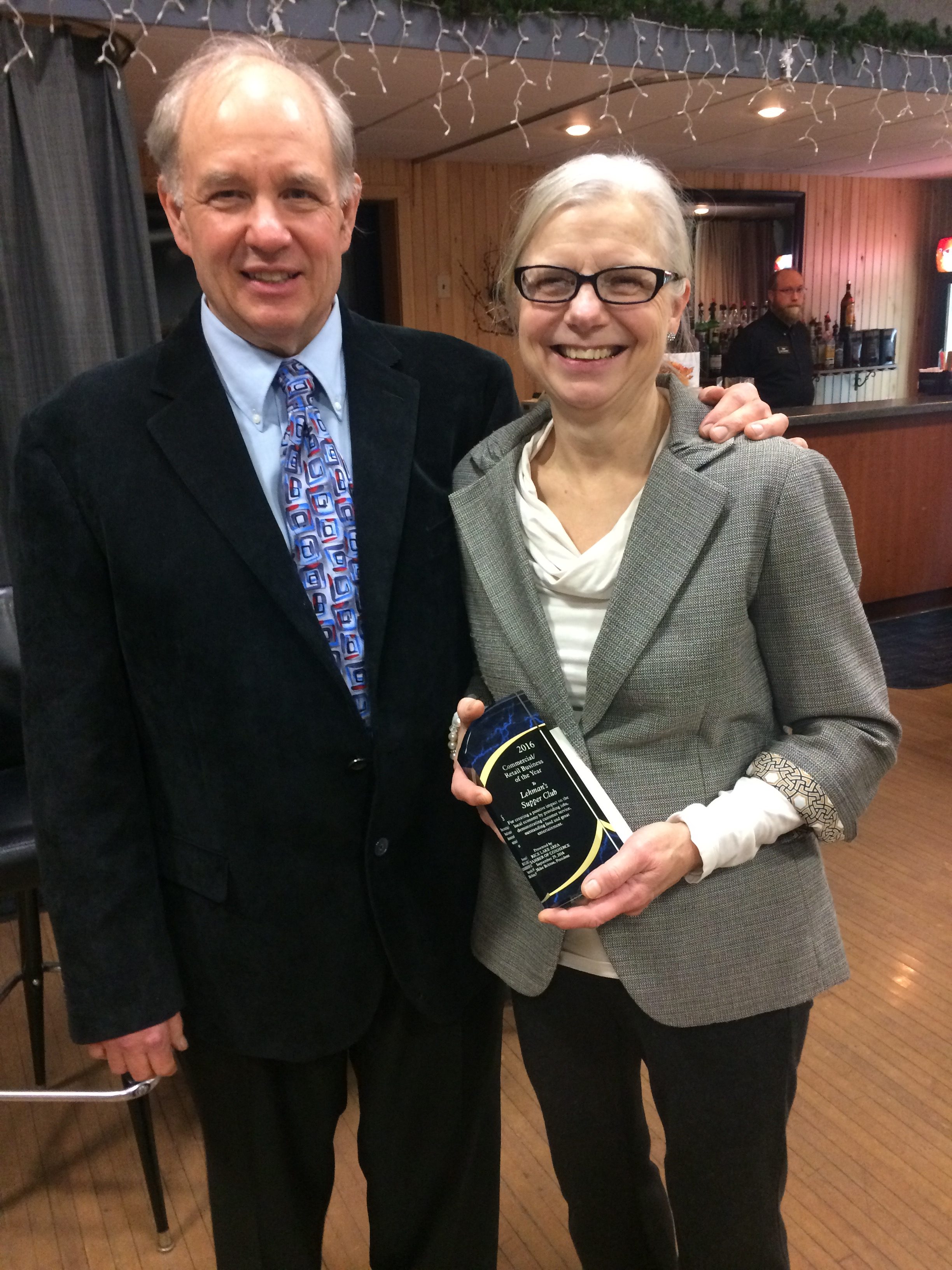Owners of Lehman’s Supper Club in Rice Lake, Butch and Trudy Lehman receiving and Outstanding Service Award for work with a local hospice program.